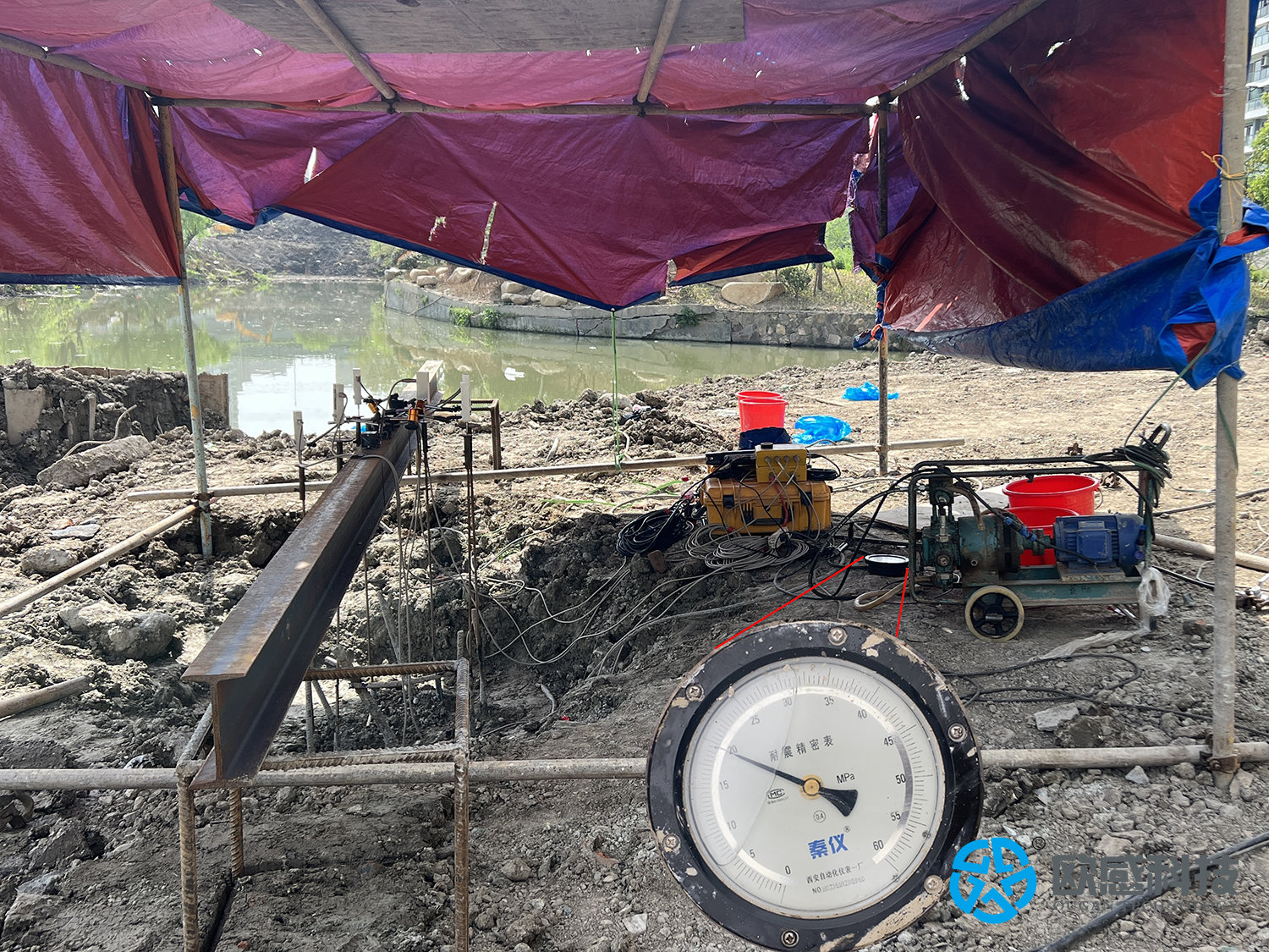 高壓加載更容易導(dǎo)致管路受損,甚至造成試驗(yàn)失敗,該項(xiàng)目采用歐感中低壓加載設(shè)計(jì),極限承載力5000噸,加載壓力僅為28.2兆帕,有效降低高壓加載風(fēng)險(xiǎn)。