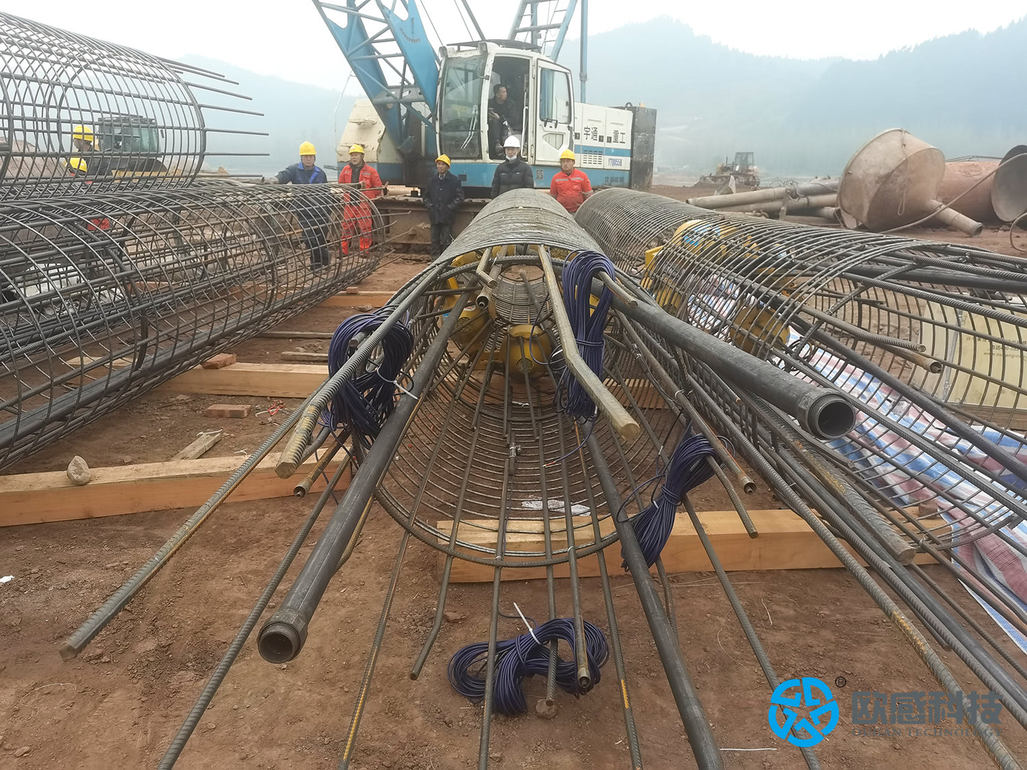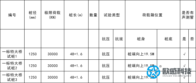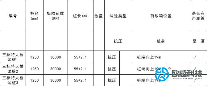 國家重點(diǎn)鐵路項(xiàng)目,歐感有幸參與一標(biāo)特大橋試樁1/2/3、二標(biāo)特大橋試樁1/2/3、三標(biāo)特大橋試樁1/2/3,共9根樁的承載力檢測(cè)并結(jié)合鋼筋計(jì)及土壓力盒,樁徑1250mm,極限承載力30000KN,這3座大橋各相隔百公里,歐感同時(shí)派遣3名現(xiàn)場(chǎng)服務(wù)工程師,歷時(shí)1個(gè)半月,順利協(xié)助客戶單位完成自平衡荷載箱安裝及數(shù)據(jù)檢測(cè)。