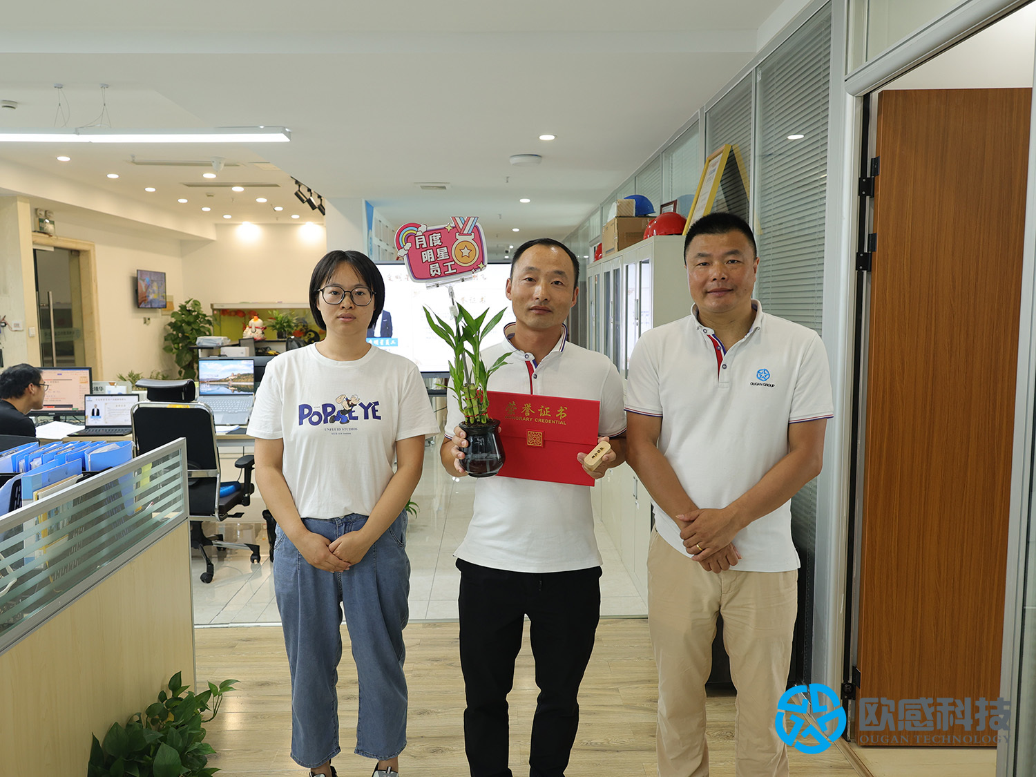 8月14日上午,歐感在杭州行政辦公室組織了簡單而熱鬧的2023年七月明星員工表彰儀式。在杭全體同事集會(huì),由部門經(jīng)理宣讀頒獎(jiǎng)詞,歐感創(chuàng)始人毛宇新為明星員工逐一頒獎(jiǎng)。