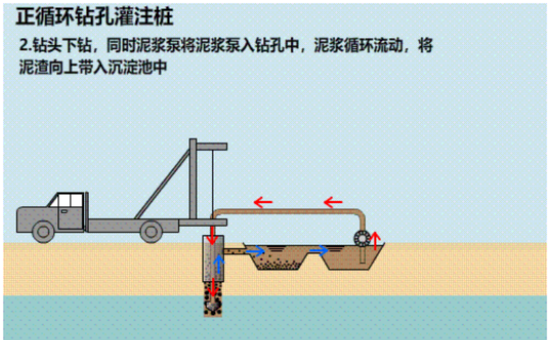 正循環(huán)鉆機和反循環(huán)鉆機,都是通過鉆井液(泥漿)的循環(huán)進行保護鉆井井壁和出渣的,即通過鉆井液(泥漿)的循環(huán),把鉆孔里的鉆渣帶出來.它們在鉆進成孔的工藝上是相同的,適用的地層也基本相同.不同的就是鉆井液(泥漿)的循環(huán)方式。