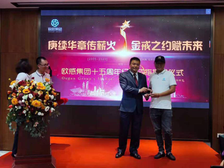 今天儀式的主題是“庚續(xù)華章傳薪火,金戒之約賦未來”?;厥讱W感走過的15年,我們歷經(jīng)了變遷;在變遷中,我們經(jīng)受了洗禮;在洗禮中,我們收獲了成長(zhǎng)。今天,我選擇了這樣一個(gè)特殊的方式,為每一位歐感人定制了一枚戒指,給歐感的成長(zhǎng)留下一個(gè)紀(jì)念,也對(duì)我們的未來做一個(gè)約定。 讓我們繼承“客戶至上”、 “革故鼎新”、“以終為始”,“礪德同心”的寶貴財(cái)富,開創(chuàng)出歐感下一個(gè)更絢麗的十五年。