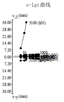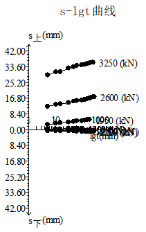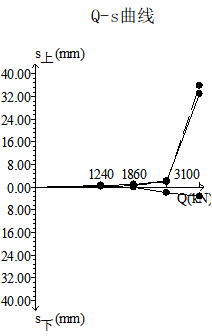 樁號12-1#,樁徑1.5m,樁長:35.7米,沖擊鉆成孔,荷載箱埋設(shè)樁端上2米,單樁豎向極限承載力:12400KN,荷載箱加載噸位:6200KN;實際檢測過程中荷載值加載到3100KN,上段樁樁身向上整體滑動,上位移平均位移:35.75mm,下位移平均位移:3.48mm,如下表1附具體測試位移數(shù)據(jù),附具體曲線圖。