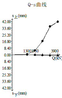 樁號右幅10-2#,樁徑1.5m,樁長:29.8米,沖擊鉆成孔,荷載箱埋設(shè)樁端上3米,單樁豎向極限承載力:13000KN,荷載箱加載噸位:6500KN;實際檢測過程中荷載值加載到3900KN,上段樁樁身向上整體滑動,上位移平均位移:41.75mm,下位移平均位移:1.16mm,如下表2附具體測試位移數(shù)據(jù),附具體曲線圖。